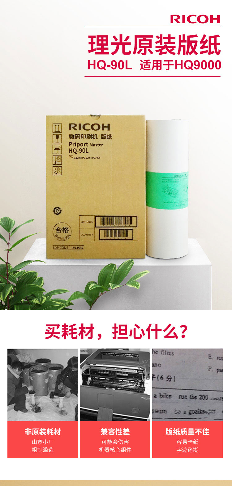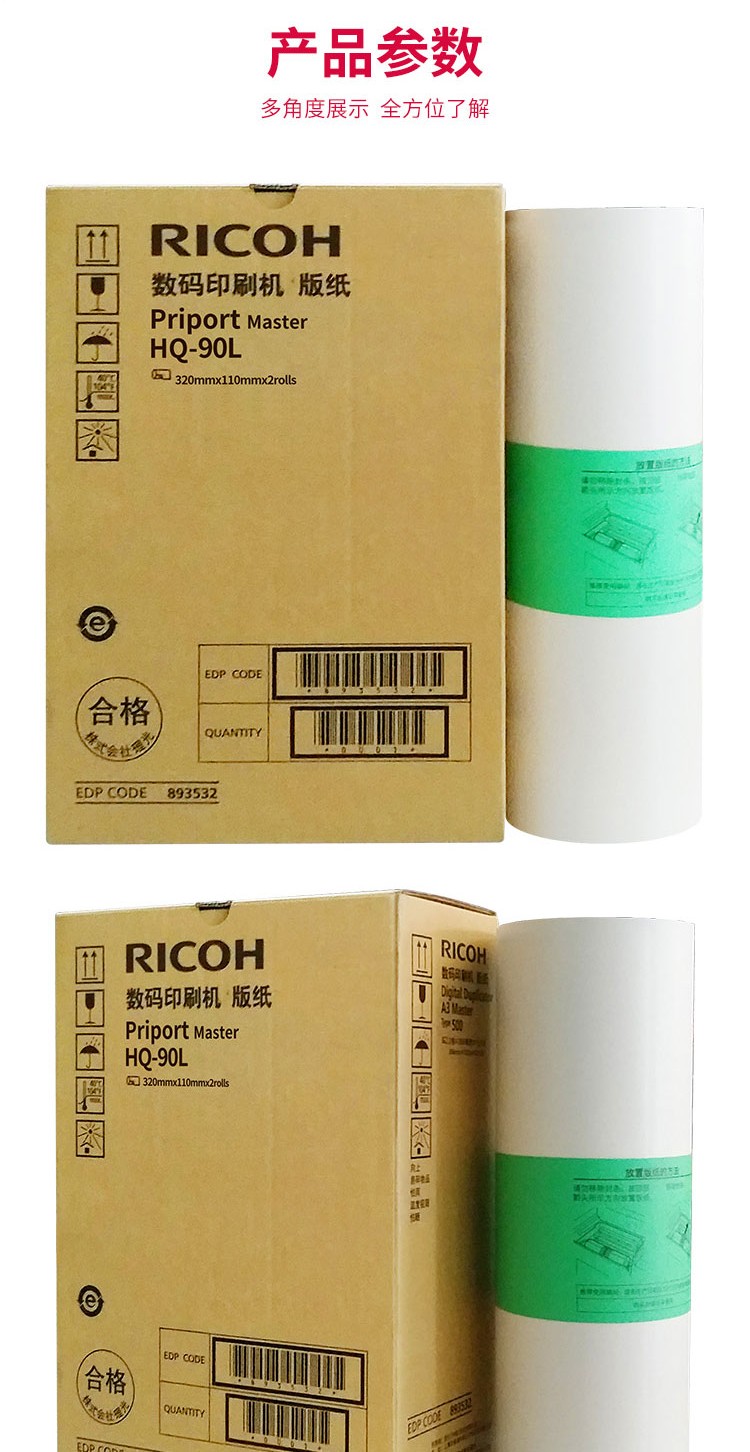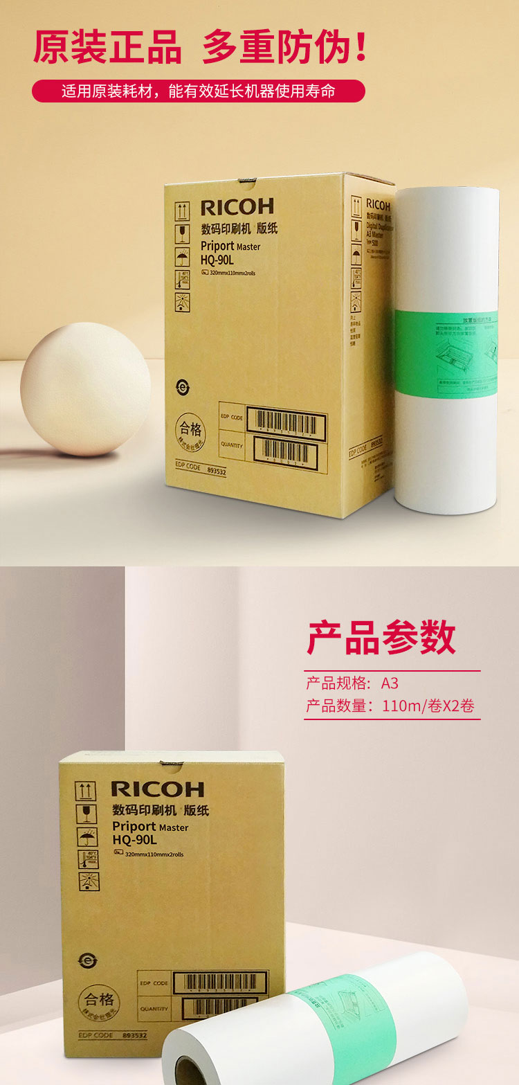 • 商品名稱(chēng):理光(Ricoh)HQ90L(110m/卷*2卷) 版紙 適用于HQ9000
