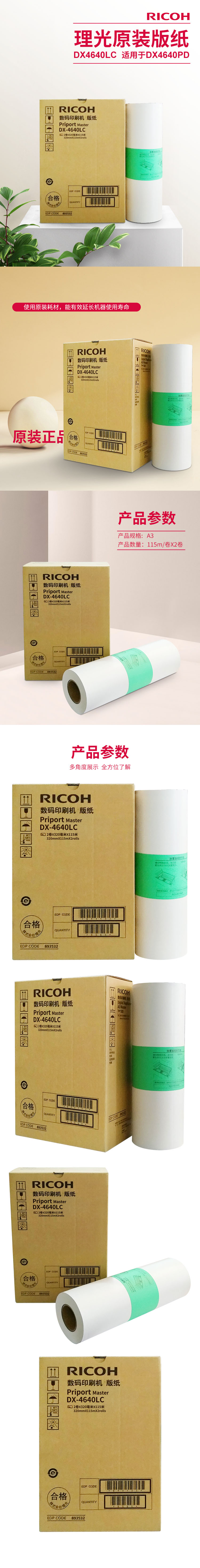 • 商品名稱:理光(Ricoh)DX4640LC(115m/卷*2卷) 版紙 適用于DX4640PD