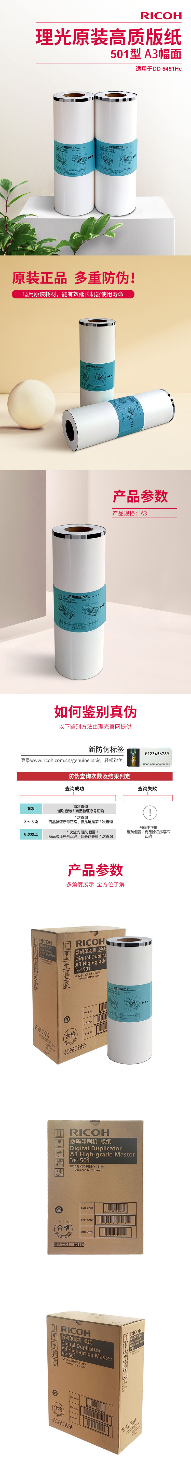 - 商品名稱:理光(Ricoh)501型(121m/卷*1卷)A3高質(zhì)版紙 適用于 DD 5451Hc