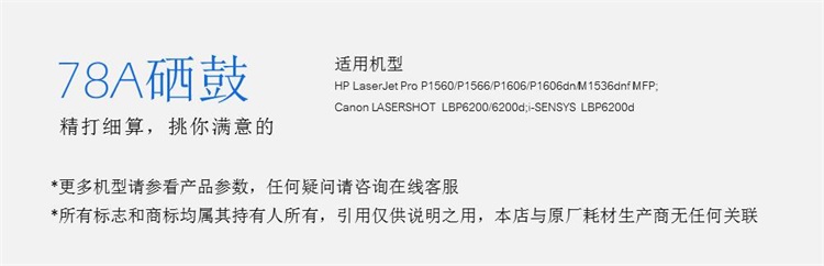 • 適用機型:HP LaserJet Pro P1560/P1566/P1606/P1606dn/M1536dnf MFP; Canon LASERSHOT LBP6200/6200d;i-SENSYS LBP6200d