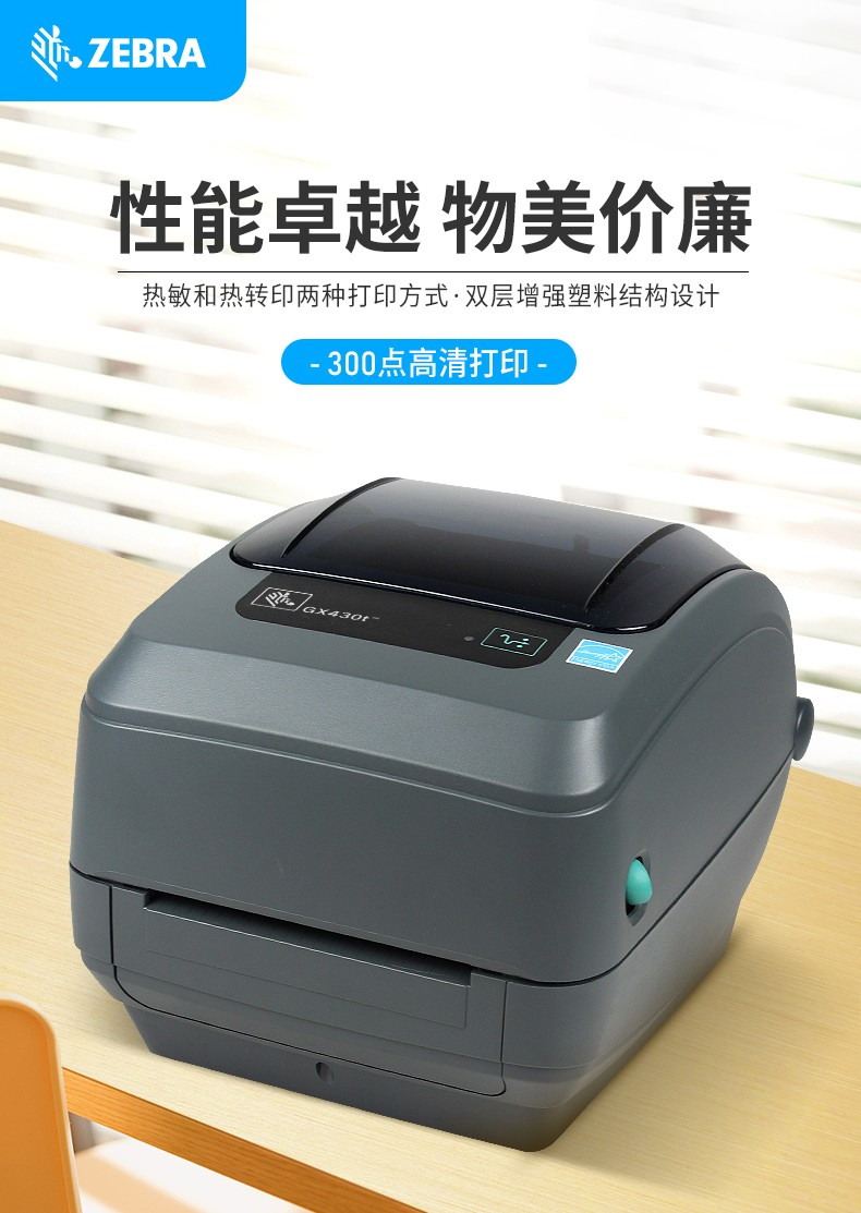 • 商品名稱:斑馬(ZEBRA)GX430T(300dpi)桌面條碼打印機 快遞電子面單 熱敏打印機 不干膠標簽機帶串口帶并口