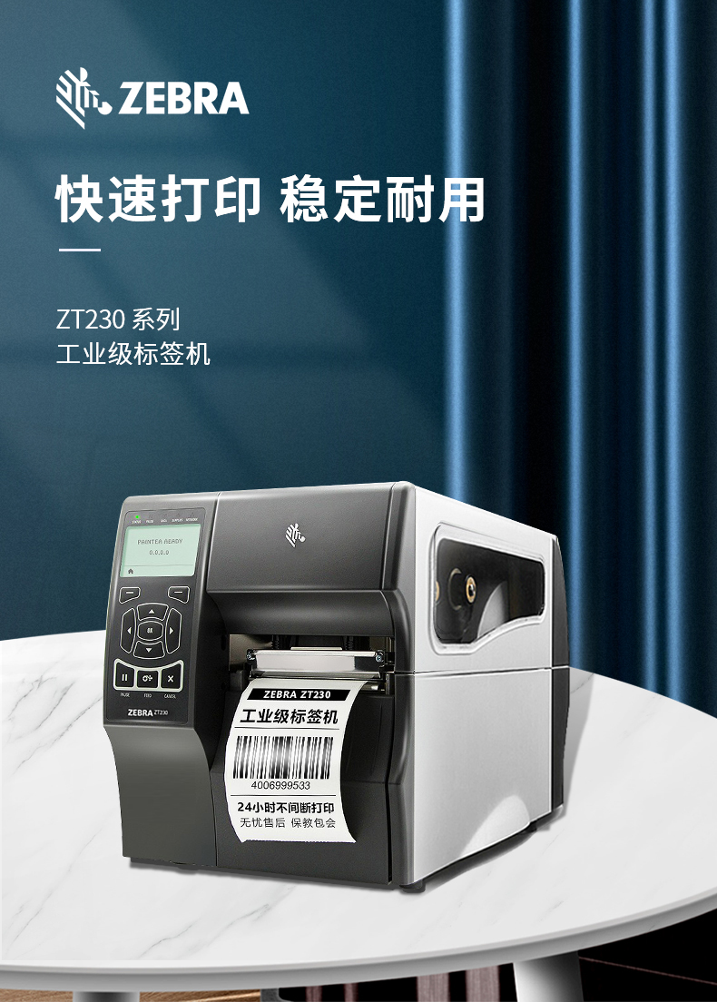 斑馬(ZEBRA)ZT230 203dpi 工業(yè)級(jí)標(biāo)簽機(jī)條碼打印機(jī) 二維碼不干膠固定資產(chǎn)打印機(jī)