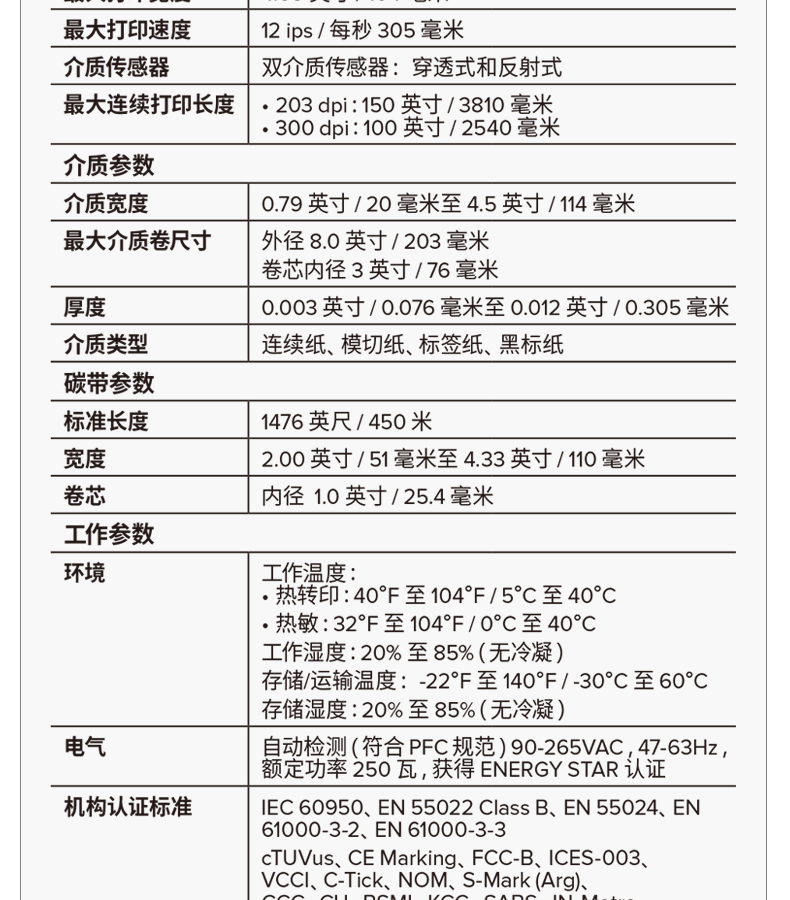 • 性能:打印材料: 銅版紙;合成紙;PET
