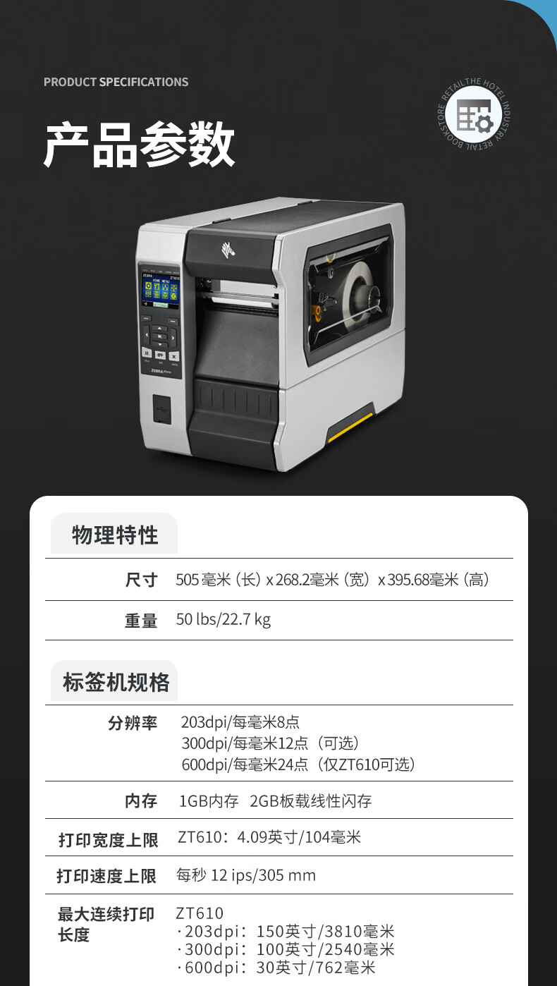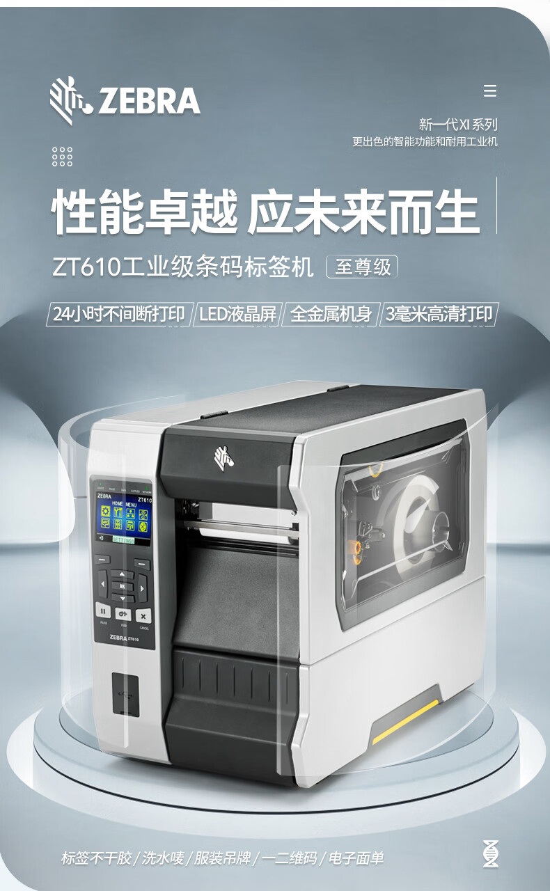 • 商品名稱:斑馬(ZEBRA)ZT610 標(biāo)準(zhǔn)4英寸打印機(203dpi)工業(yè)型不干膠標(biāo)簽吊牌水洗標(biāo)條碼打印機 金屬標(biāo)簽打印機 110XI4升級款