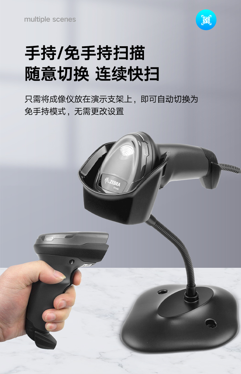 斑馬(ZEBRA)DS4608 有線一二維碼條碼槍條碼槍掃碼器 醫(yī)保碼健康碼 疫苗用掃描槍 DS4608-XD-高密度條碼