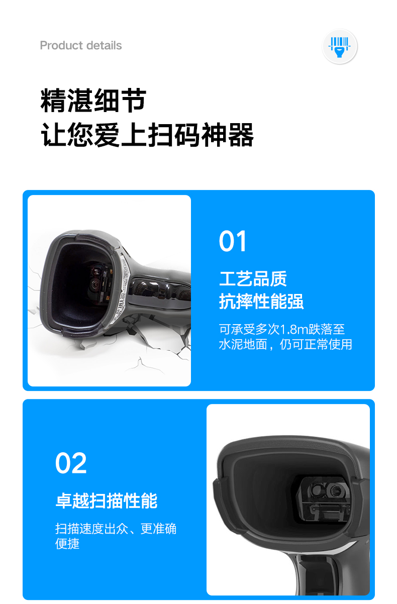 • 性能:有線一二維碼條碼槍條碼槍掃碼器