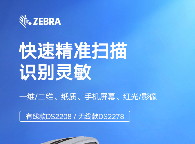 斑馬(ZEBRA)DS2208 一二維碼條碼槍條碼槍掃碼器 商超煙酒零售服裝藥店商品微信收銀 DS2208-SR 二維標配有線