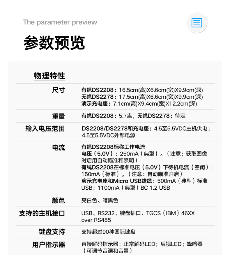• 規(guī)格:抗震能力 1-1.5M 產(chǎn)品凈重 200g 掃描精度 其他