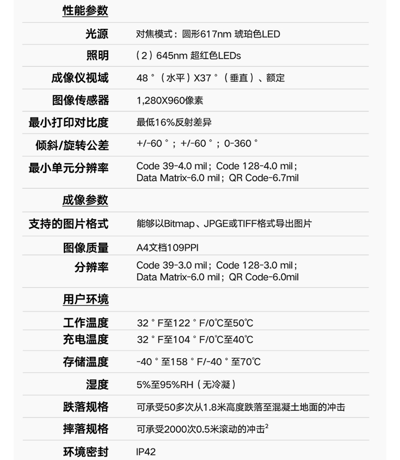 • 規(guī)格:抗震能力 1-1.5M 掃描精度 3mil 產(chǎn)品凈重 252g