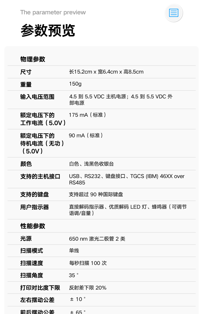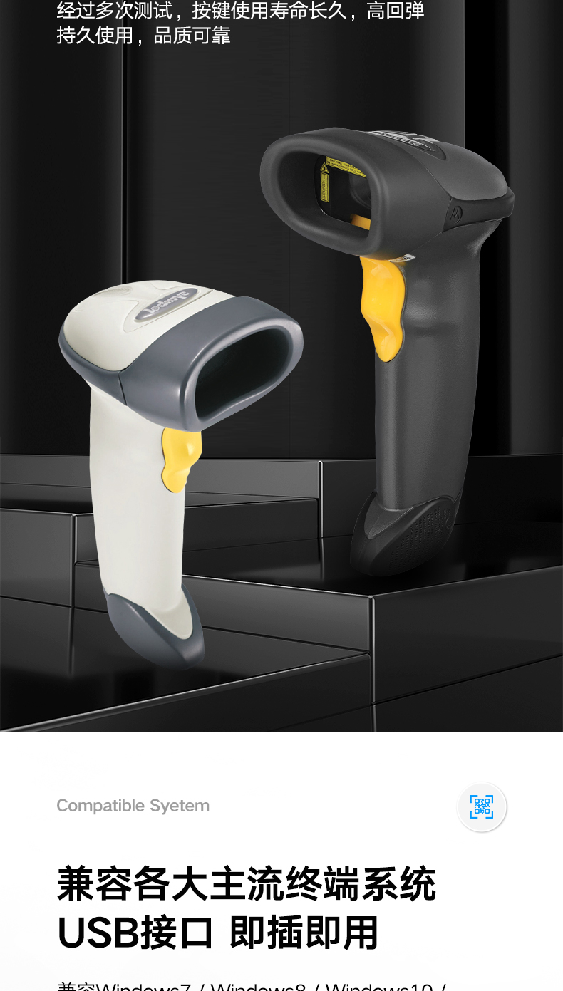 • 性能:一維激光條碼掃描槍 掃描器 USB口)