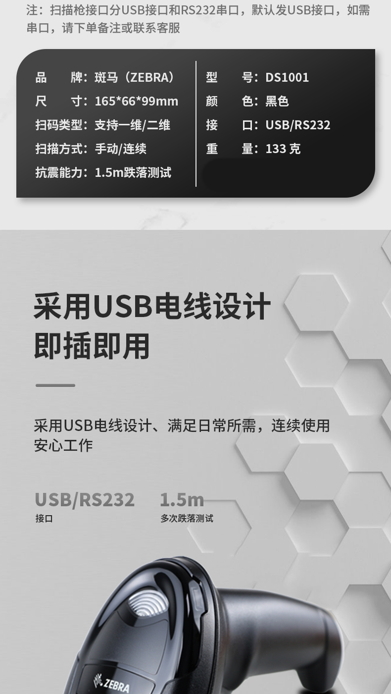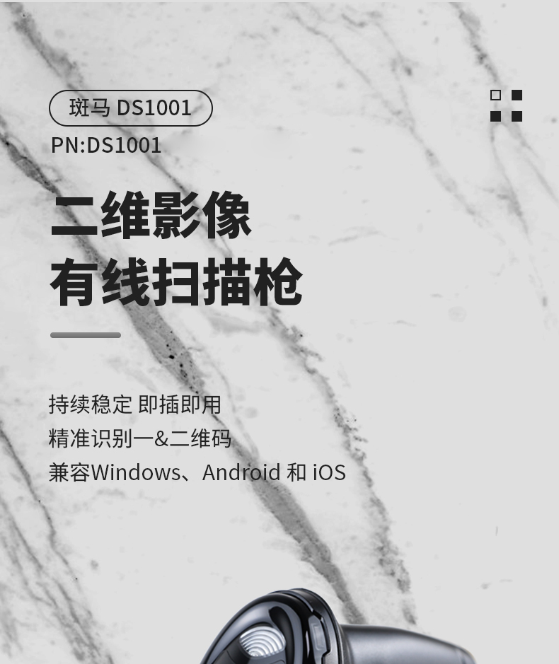 • 商品名稱:斑馬(ZEBRA)DS1001 一維二維碼有線掃描槍條碼微信支付收銀掃描器 掃碼槍 DS1001有線二維標(biāo)配