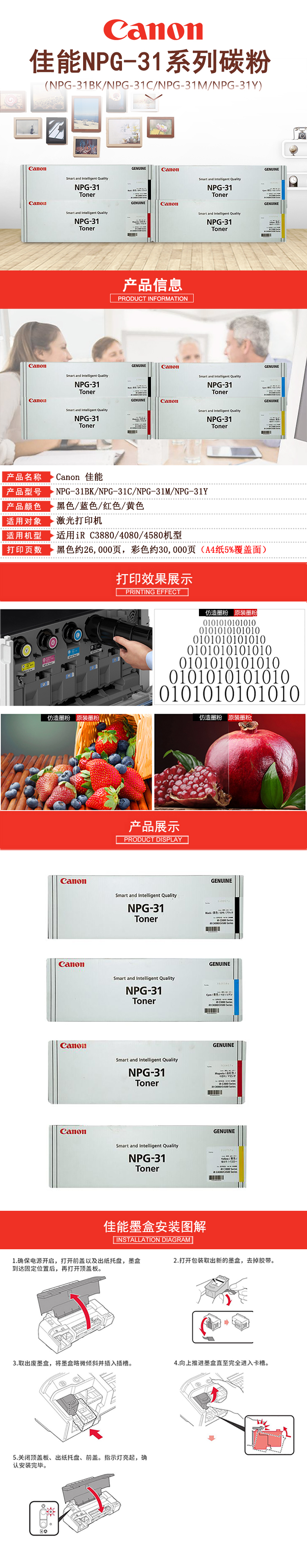 • 商品名稱:佳能 NPG-31 碳粉M(紅) 一支 適用iR C3880/4080/4580機(jī)型