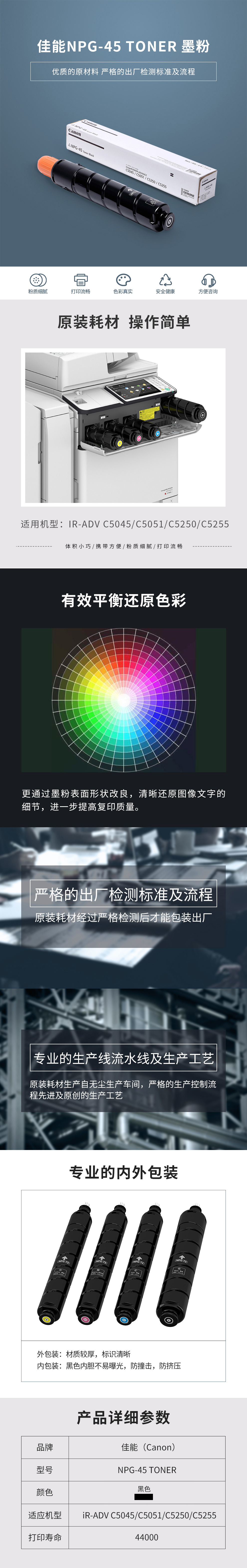• 商品名稱:佳能 NPG-45 碳粉BK(黑) 一支 適用于iR-ADV C5045/C5051/C5250/C5255
