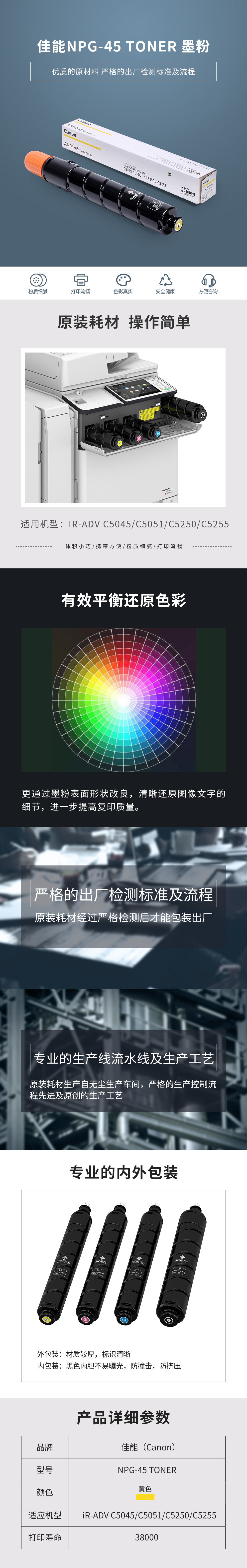 • 商品名稱:佳能 NPG-45 碳粉Y(黃) 一支 適用于iR-ADV C5045/C5051/C5250/C5255