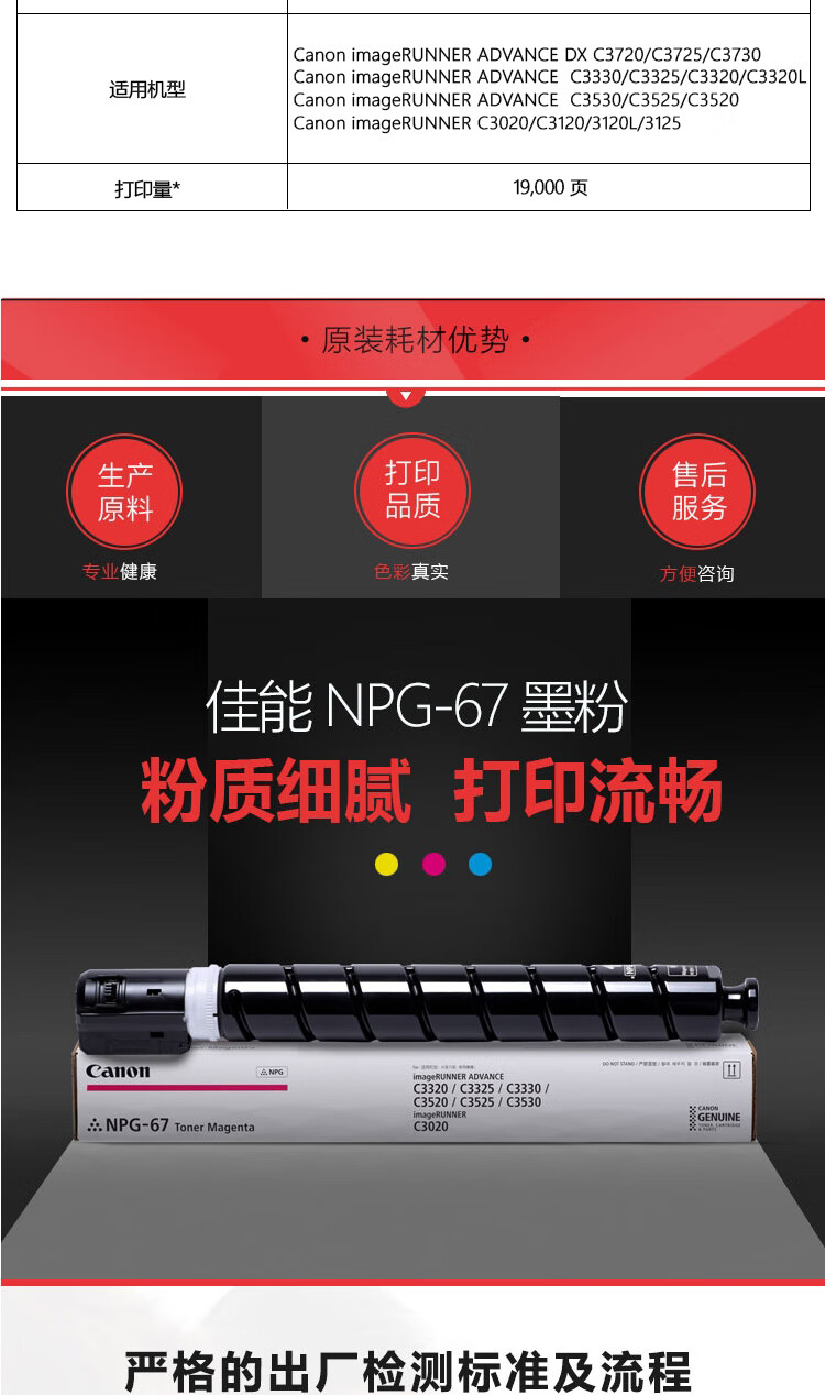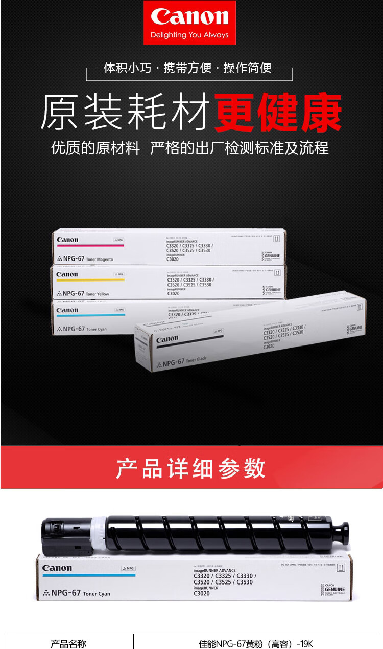 • 商品名稱(chēng):佳能 NPG-67 碳粉Y(黃) 一支 適用于iR-ADVC3320 C3325 C3330 C3020 C3530 C3525