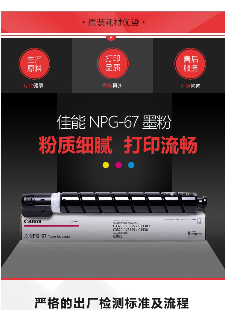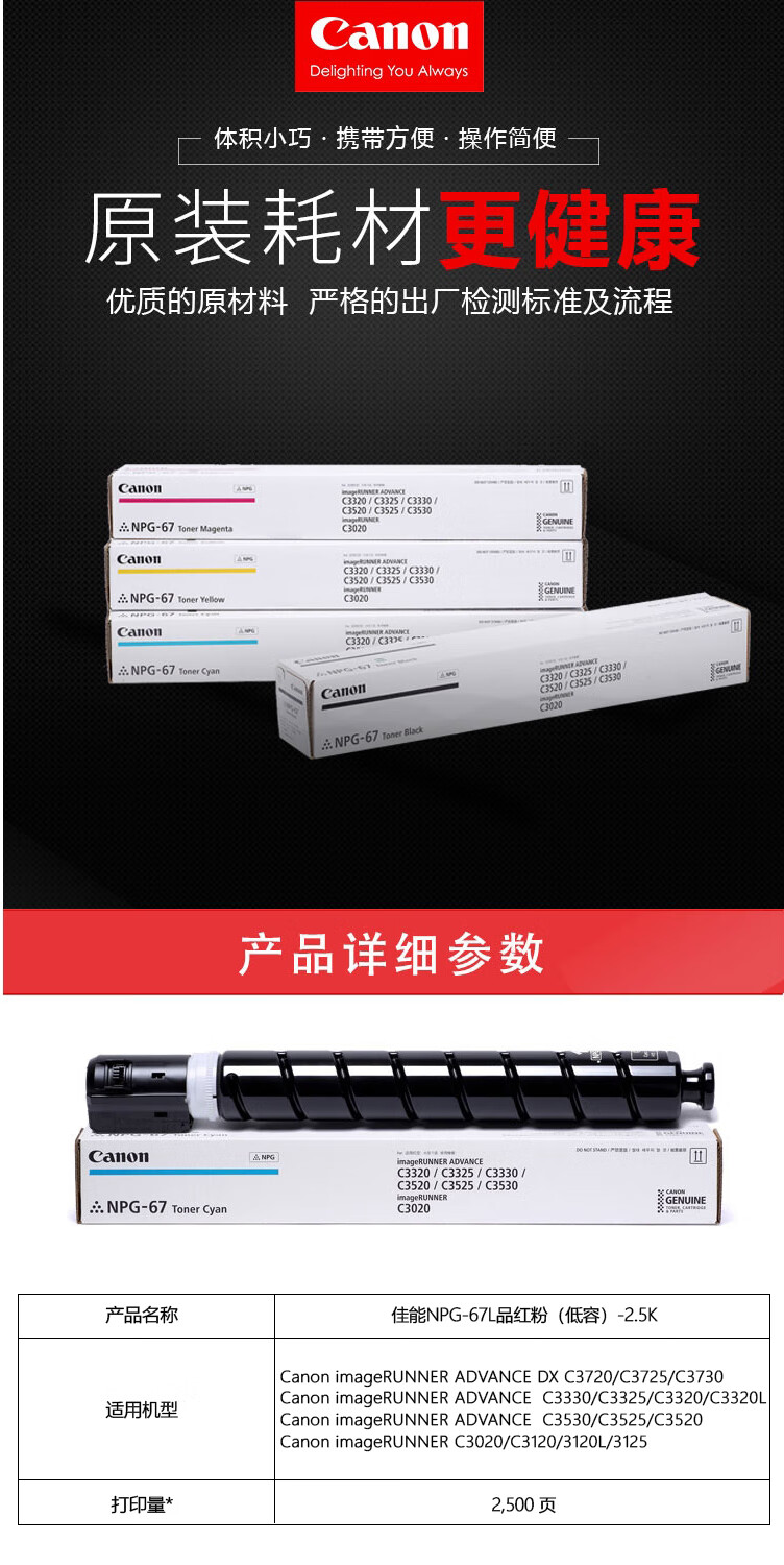 • 商品名稱:佳能 NPG-67L 碳粉M(紅) 一支 適用于iR-ADVC3320 C3325 C3330 C3020 C3530 C3525 C3520