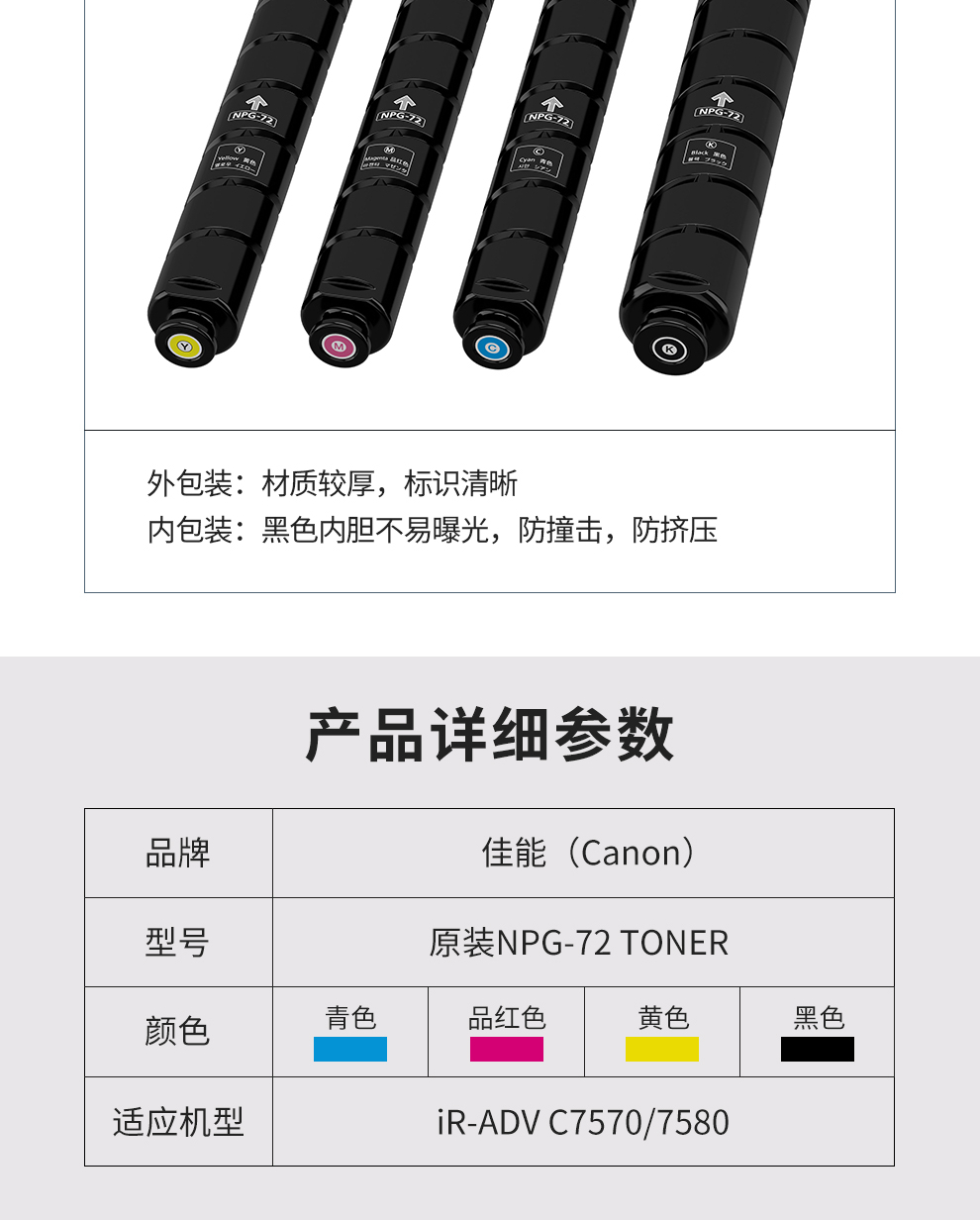 • 商品名稱:佳能 NPG-72 碳粉Y(黃) 一支 適用于iR-ADV C7570/7580/7770/7780