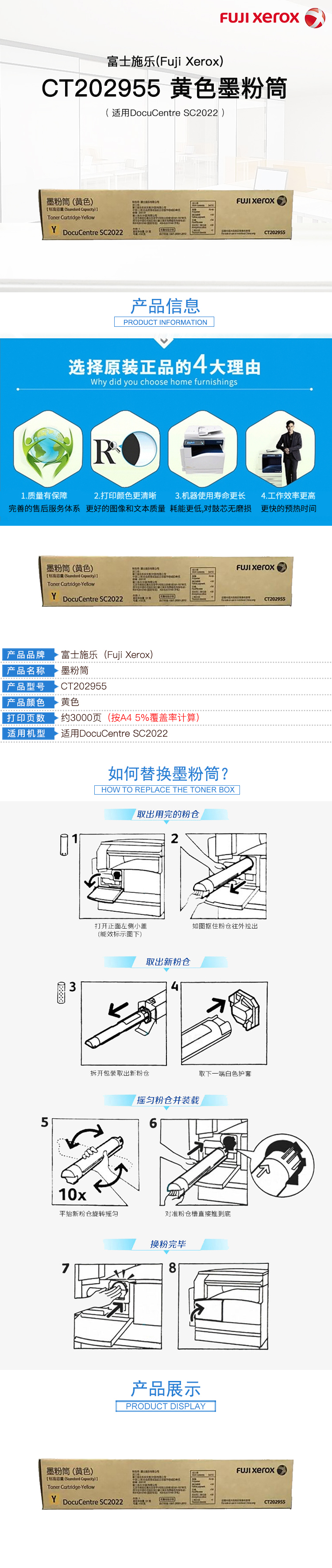 • 商品名稱(chēng):富士膠片 CT202955 黃色 墨粉 小容量 一支 適用于SC2022