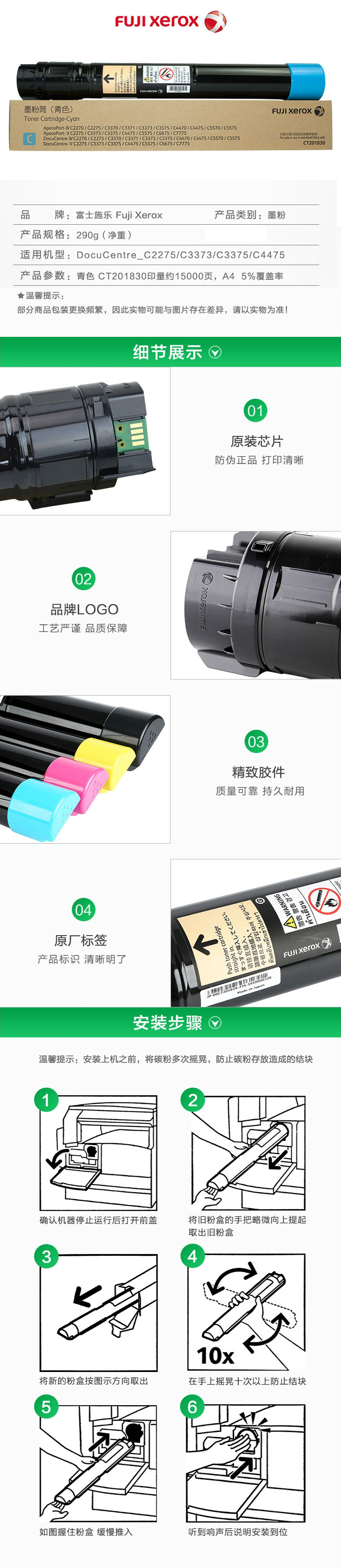 - 商品名稱:富士膠片 CT201830 青色 墨粉 一支 適用于 C2275/C3373/C3375/C4475/C5575/C6675/C7775