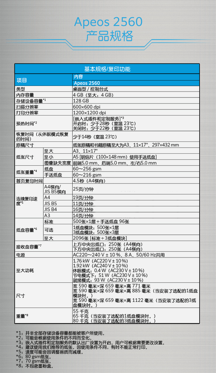 • A4復印速度(黑白):25