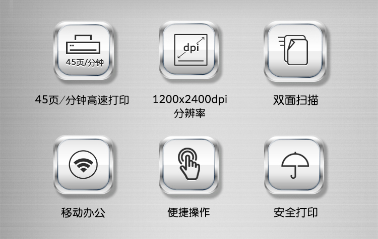 • A4復(fù)印速度(黑白):45頁/分鐘