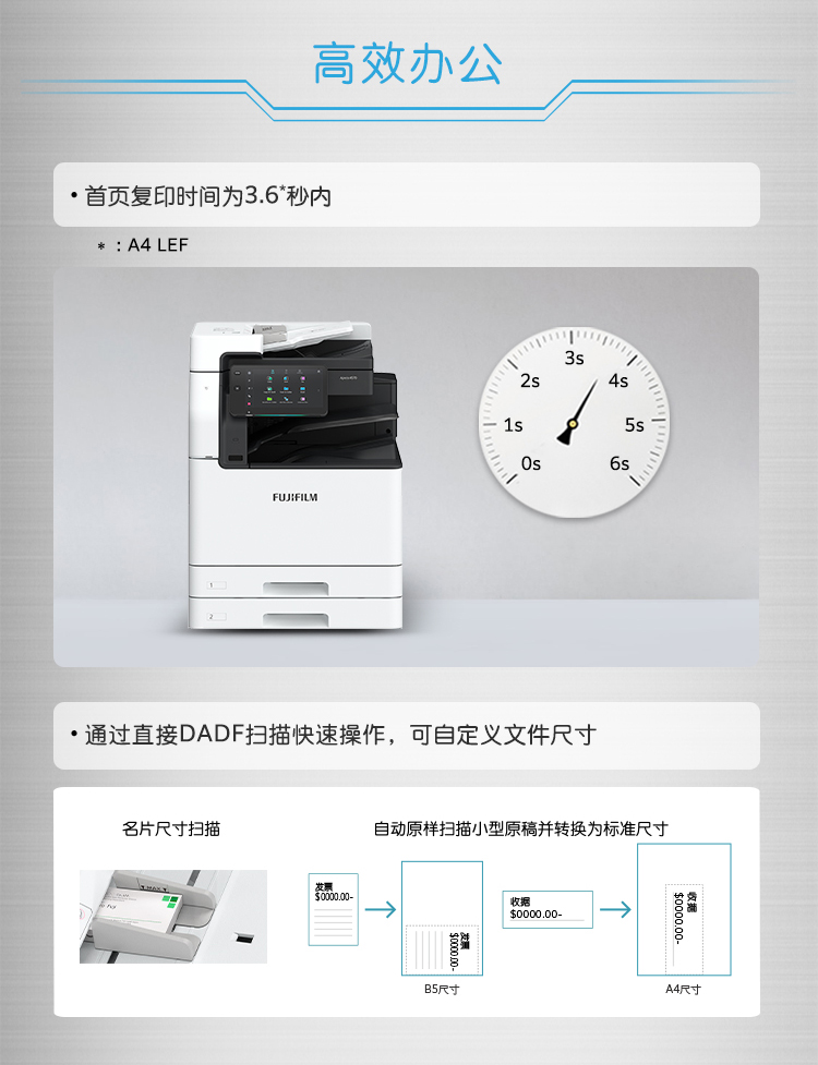 • 黑白首張復(fù)印時(shí)間:3.6秒(A4橫向)