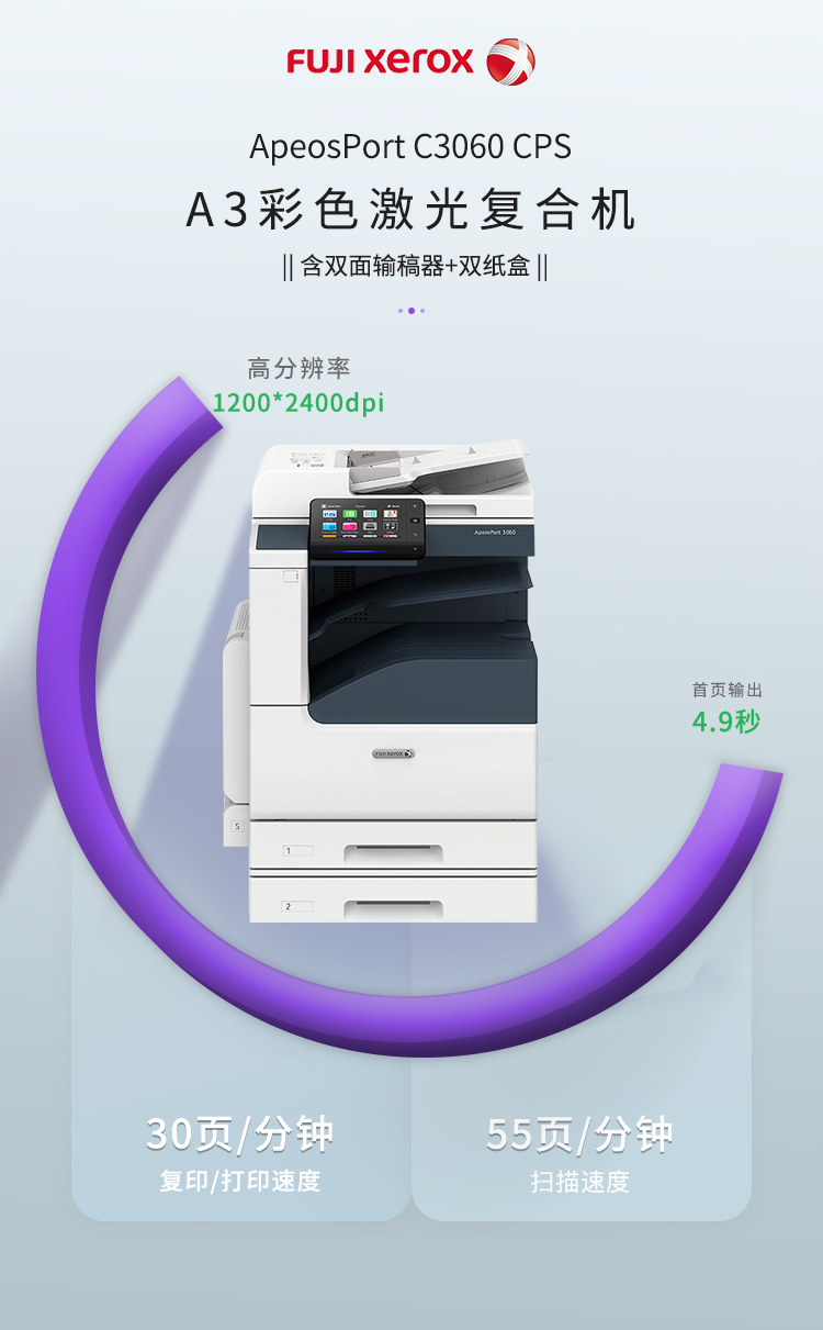 富士膠片( FUJIFILM) Apeos C3060 CPS-B 2Tray A3彩色多功能復(fù)合復(fù)印機(jī) 含輸稿器+兩紙盒