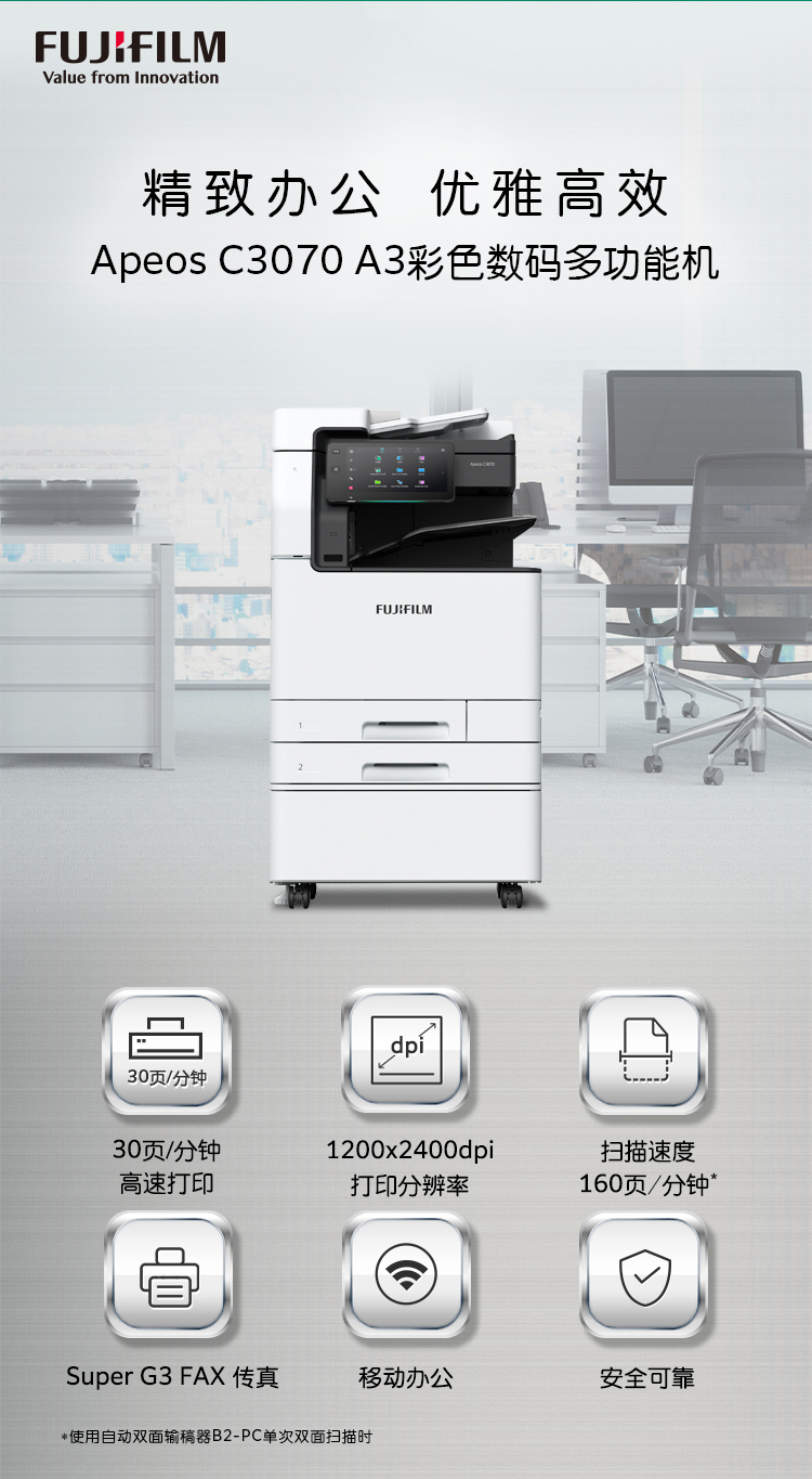 • 商品名稱:富士膠片(FUJIFILM)Apeos C3070 CPS SC A3彩色多功能復(fù)合復(fù)印機 兩紙盒+A2內(nèi)置裝訂器