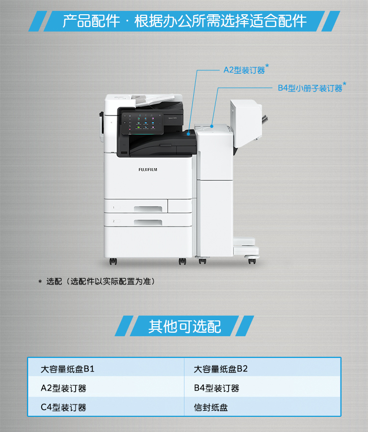 • 商品名稱:富士膠片(FUJIFILM)Apeos C3070 CPS A3彩色多功能復(fù)合復(fù)印機(jī) 兩紙盒+輸稿器+雙面器+C4型小冊(cè)子裝訂器