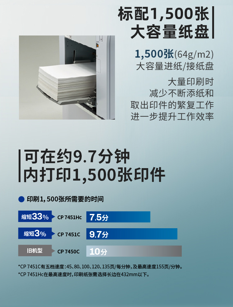 • 印刷速度:45 ~135頁/分鐘(5級可変)、155頁/分鐘(最高速)