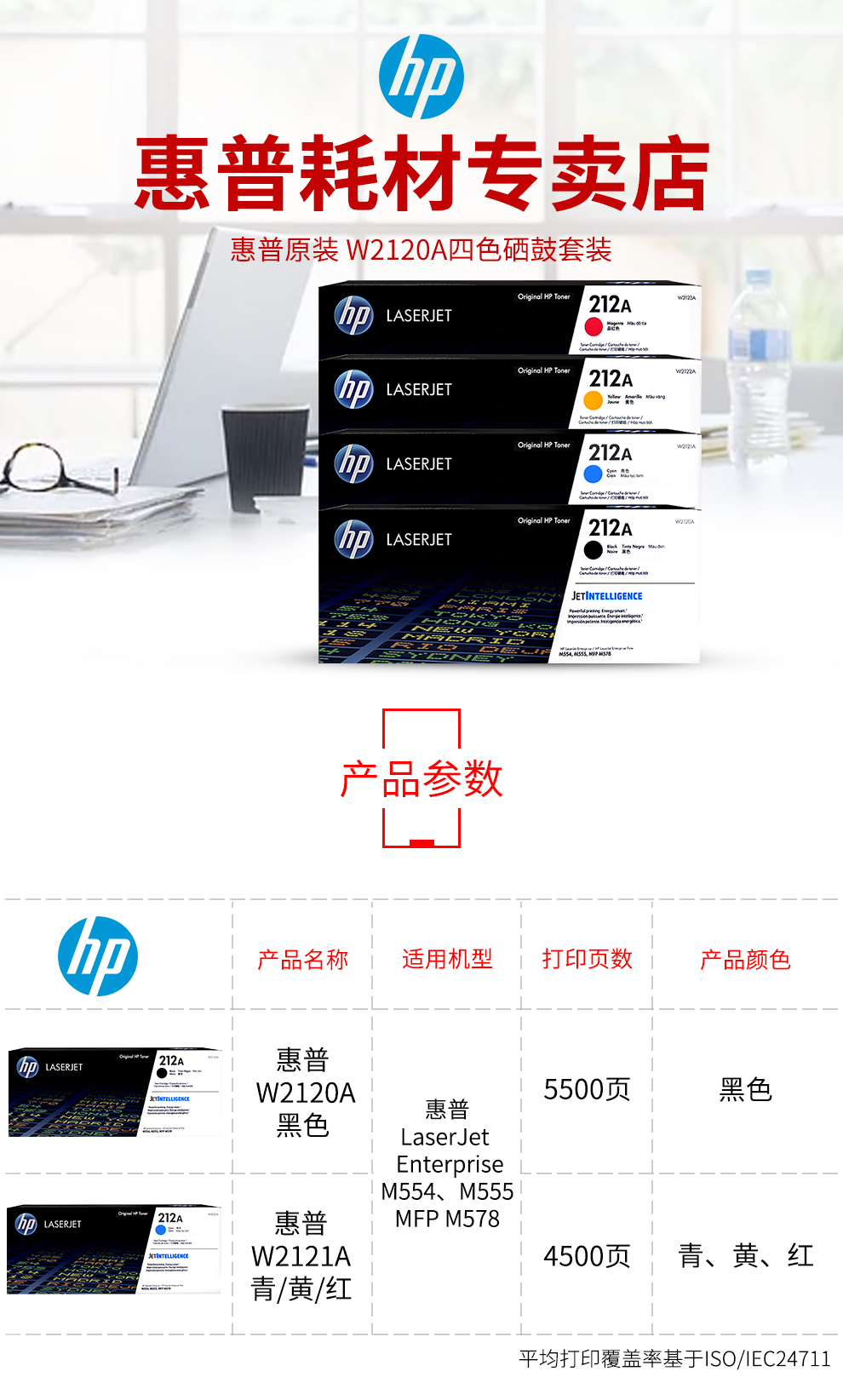 • 商品名稱:惠普(HP) W2122A 212A 約4500頁 硒鼓 一支 適用于M554 M555 MFP578系列 黃色