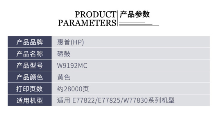 • 商品名稱:惠普(HP)W9192MC 原裝碳粉盒 黃色(支)(適用:E77822dn/z/77825dn/z)