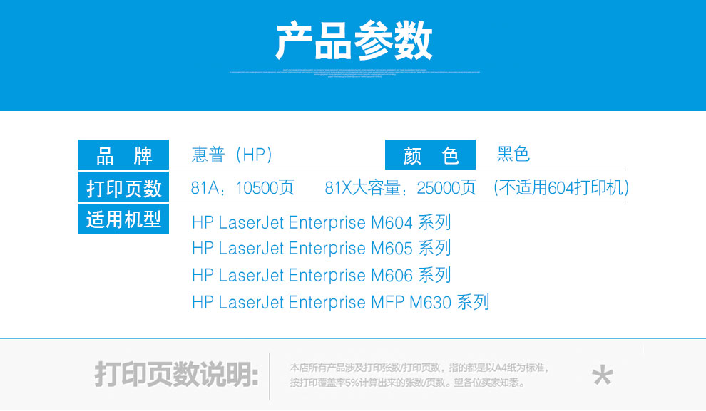 • 商品名稱:惠普 CF281X 大容量硒鼓(25000頁) 適用于630/605/604/606dn打印機(jī)