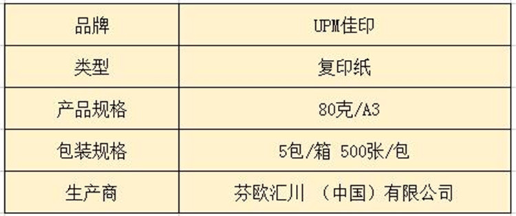 佳印UPM 80克A3 復(fù)印紙(500張/包 5包/箱)
