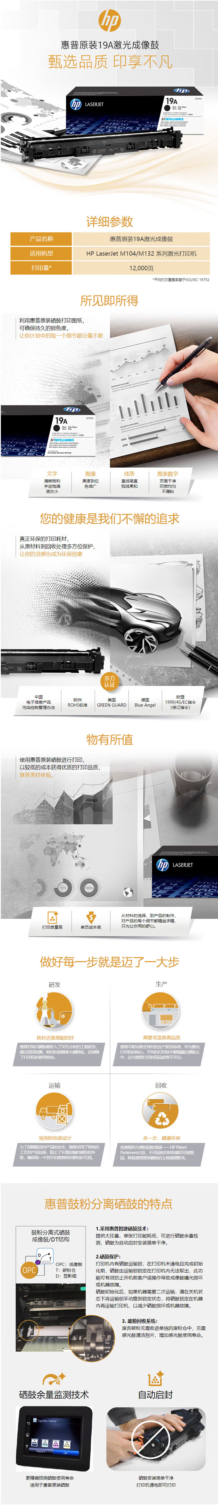 - 商品名稱:惠普(HP)19A(CF219A)原裝成像鼓單支裝(適用hp M104a/w M132a/nw/fn/fp/fw)打印頁數(shù)12000