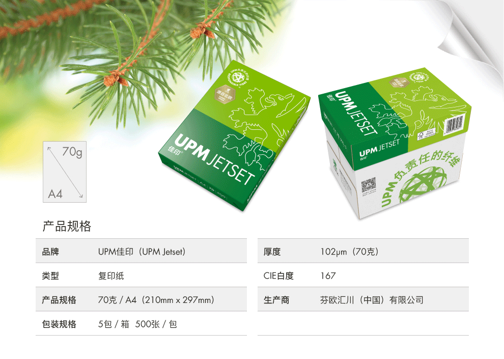 佳印UPM 70克A4 復(fù)印紙(500張/包 5包/箱)