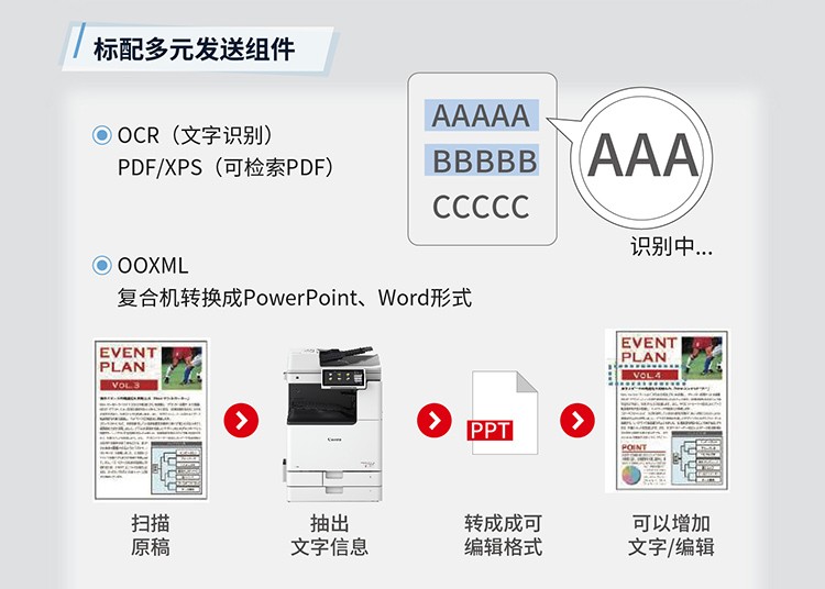 - 涵蓋網(wǎng)絡(luò)功能:復(fù)印/打印/掃描