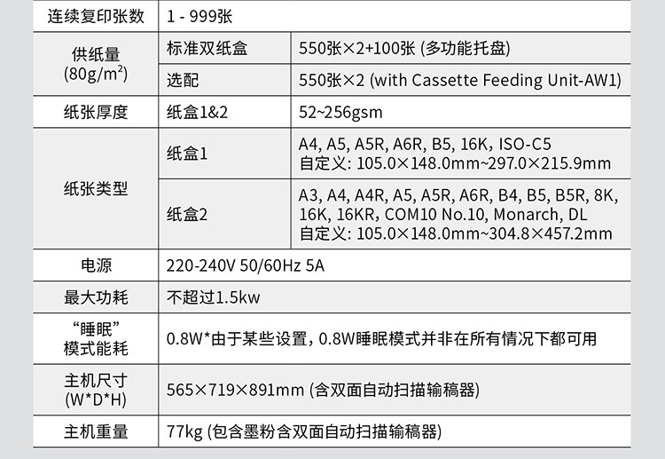 - 黑白首張復(fù)印時(shí)間:5.5/7.4s或更少