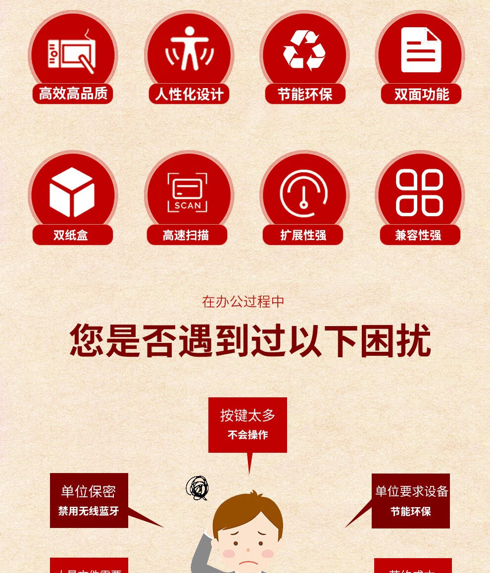 • 涵蓋網(wǎng)絡(luò)功能:復(fù)印/打印/掃描