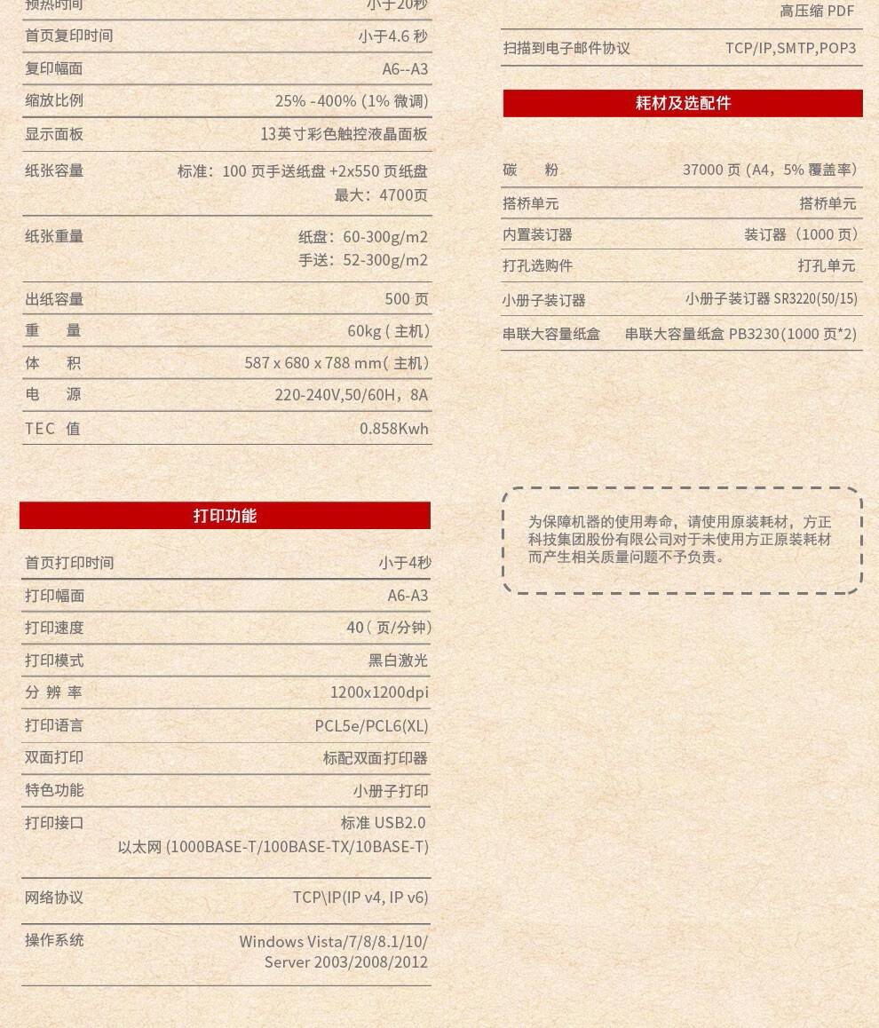 • A4復(fù)印速度(黑白):40頁(yè)/分鐘