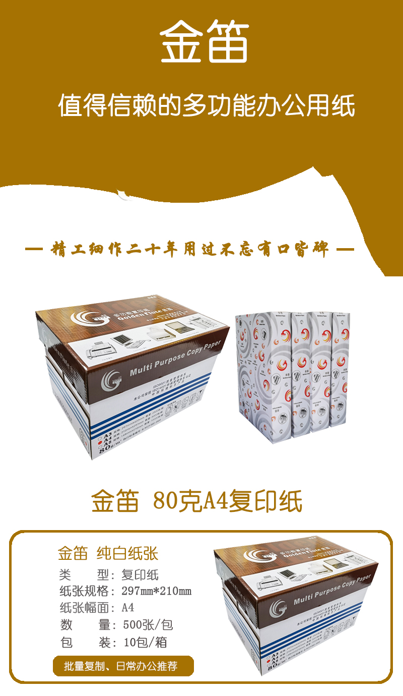 • 商品名稱:金笛 80克A4 復印紙 10包/箱 500張/包(單價 元/箱)