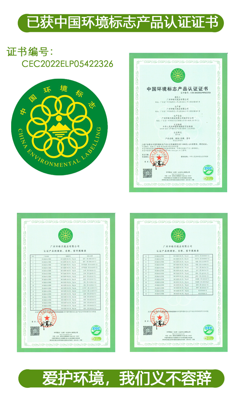 • 環(huán)境標(biāo)志產(chǎn)品認(rèn)證證書編號:CEC2022ELP05422326