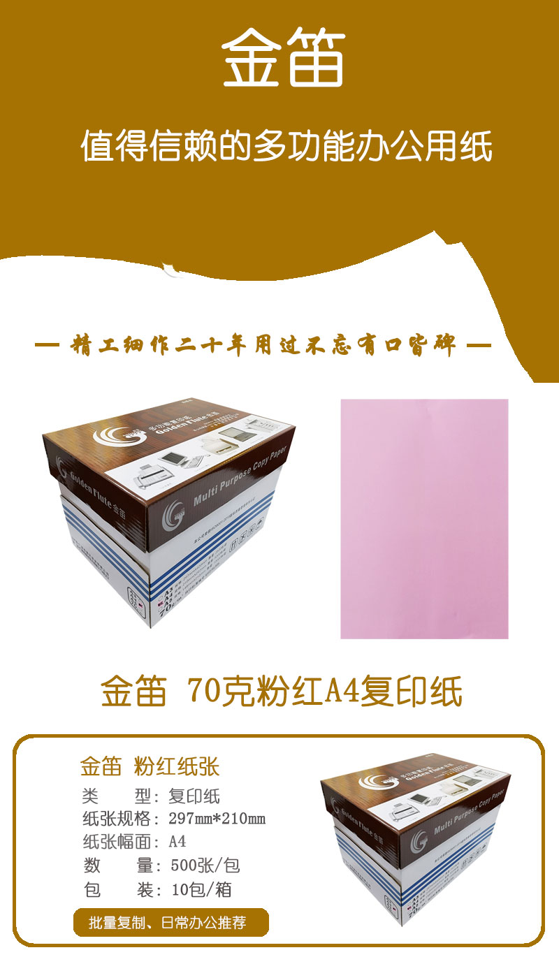 金笛 70克粉紅A4 優(yōu)等品彩色復(fù)印紙 10包/箱 500張/包(單價(jià) 元/箱)廠(chǎng)家直銷(xiāo)