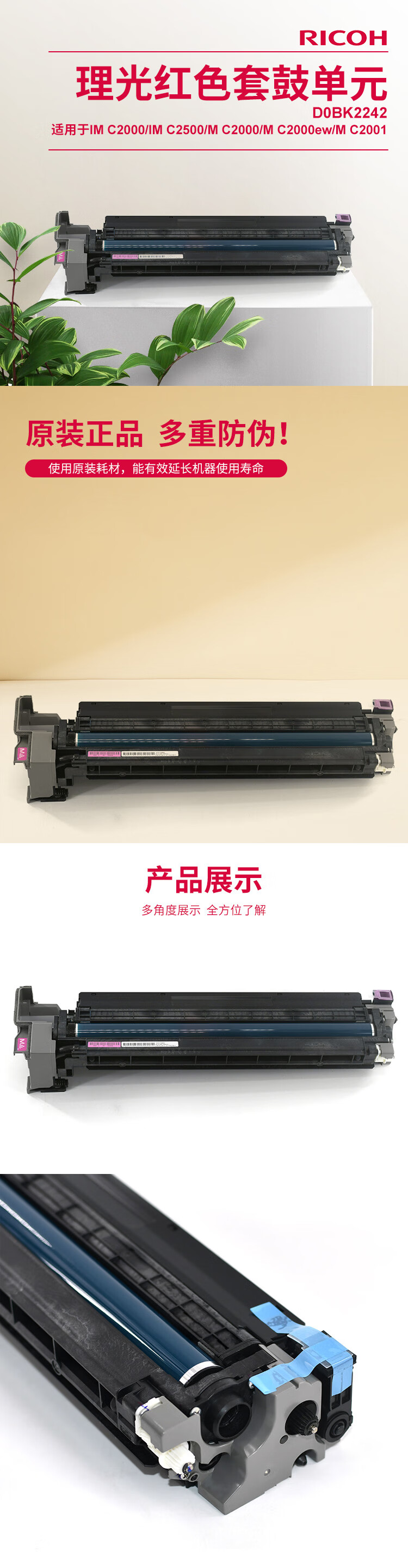 • 商品名稱:理光(Ricoh)D0BK2242 紅色套鼓單元 適用于(IM C2000/C2500/M C2000/C2000ew/C2001)