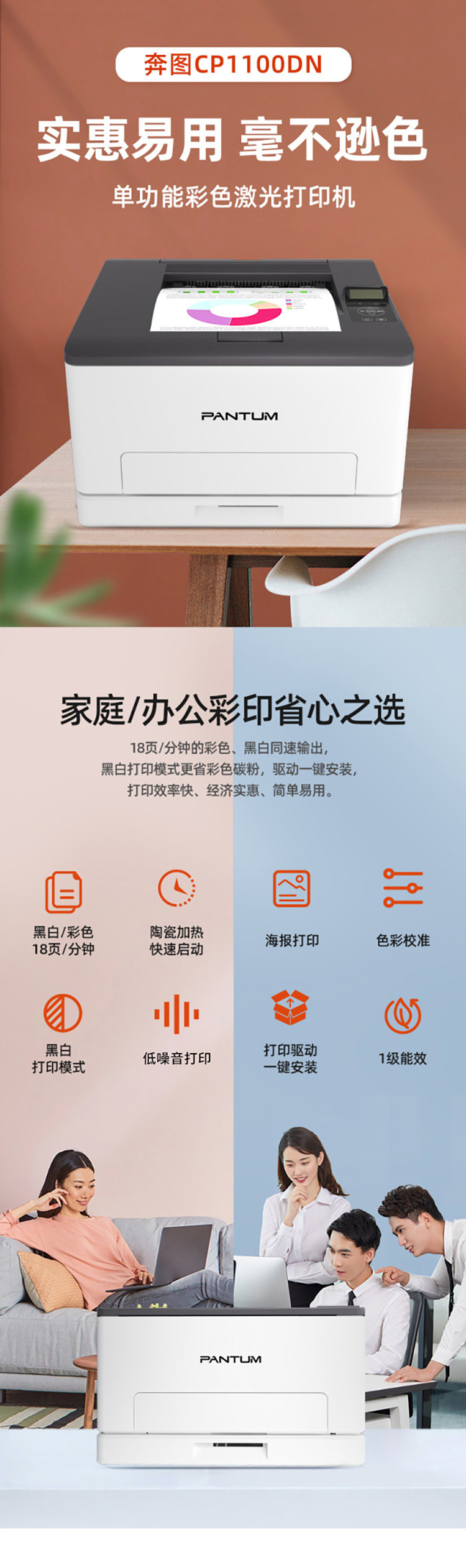 • 商品名稱:奔圖(PANTUM)CP1100DN 彩色激光打印機(jī)家用辦公 自動(dòng)雙面彩印 有線連接
