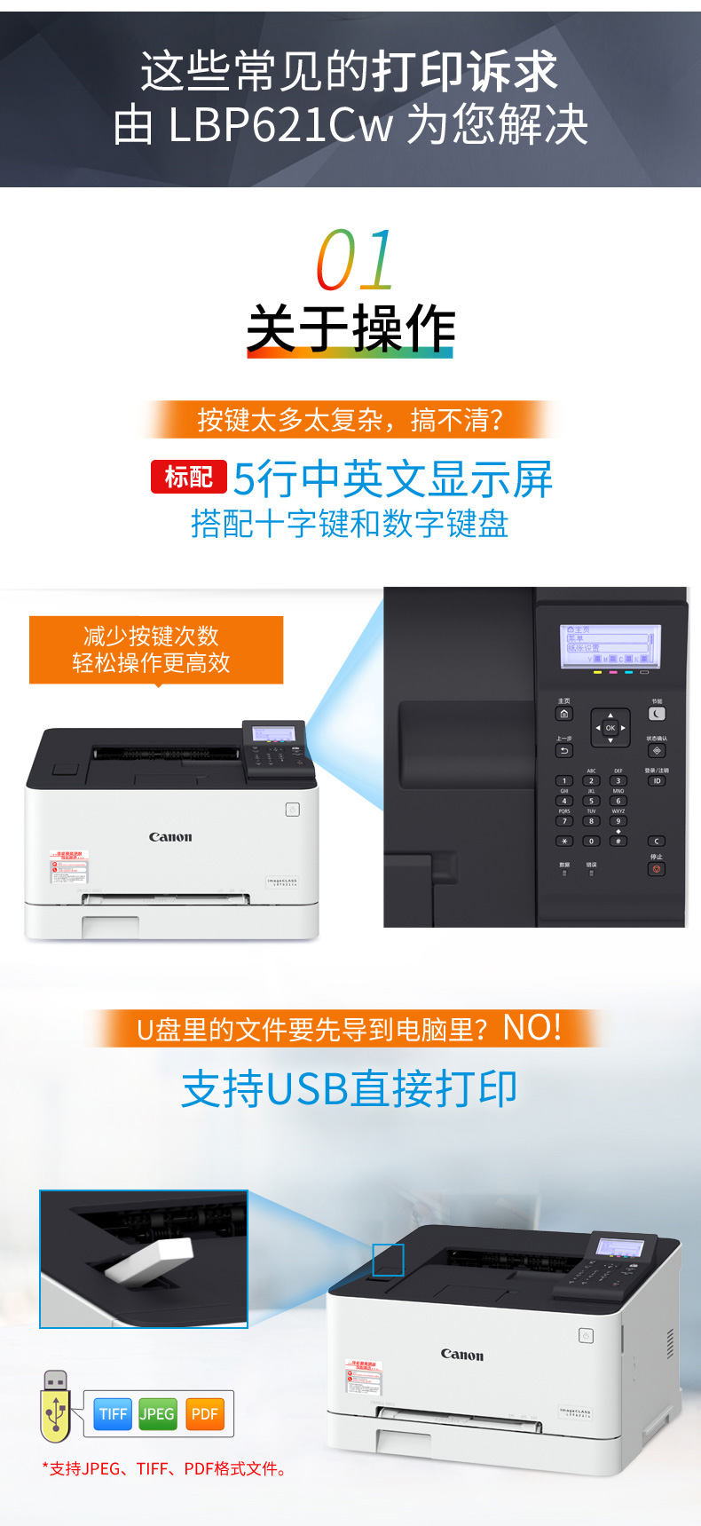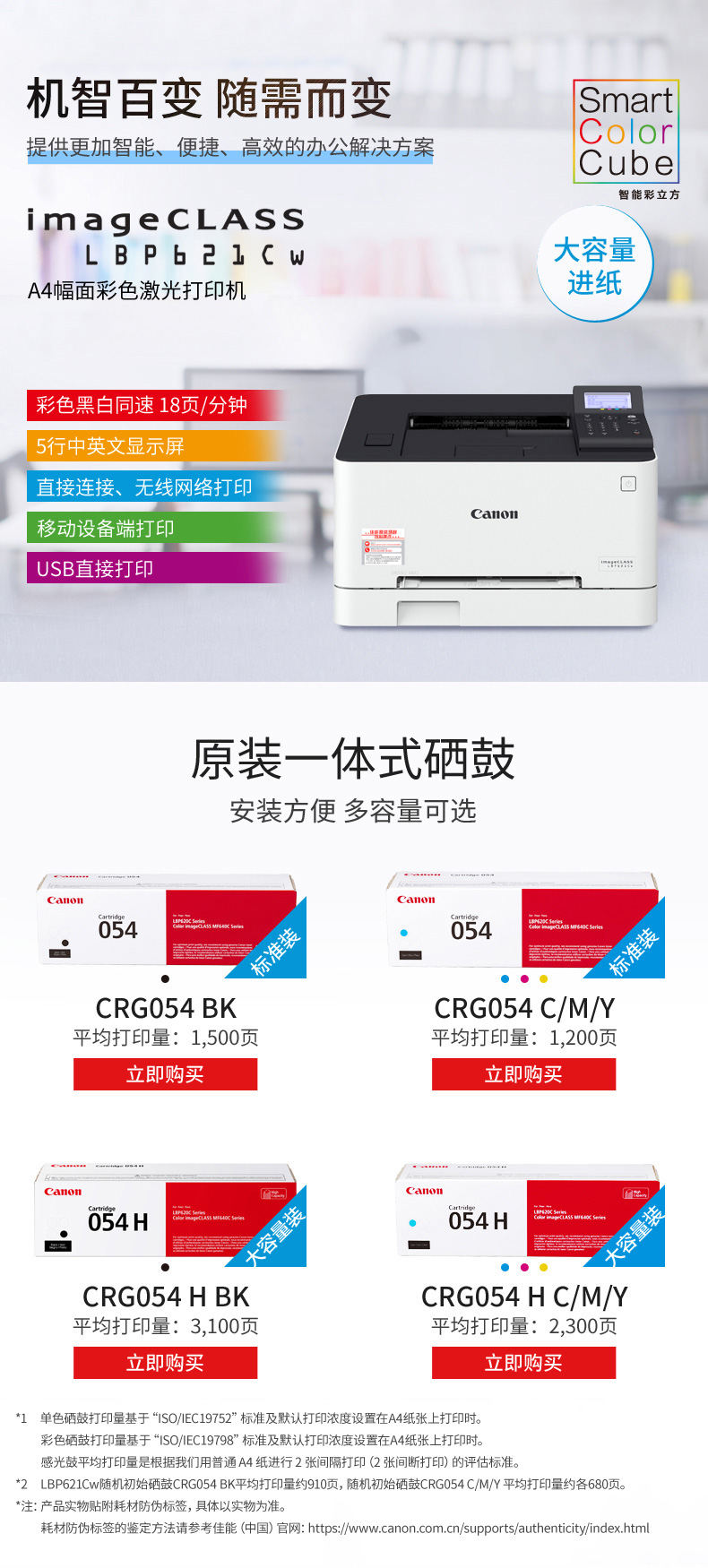 • 商品名稱:佳能(Canon) LBP621Cw A4幅面無(wú)線彩色激光單功能打印機(jī)
