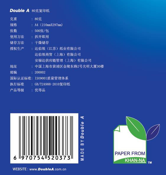 • 商品名稱:達伯埃/Double A 80克 A4 復印紙 500張/包 5包/箱