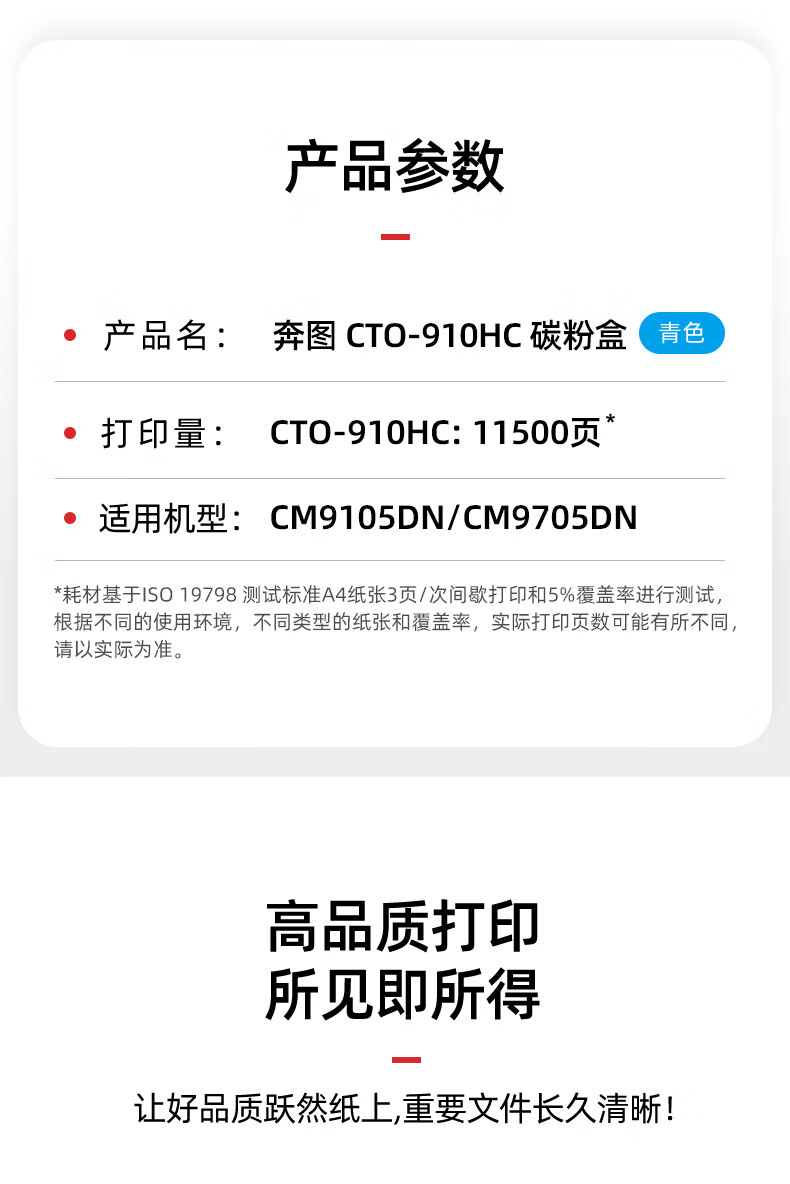 • 商品名稱:奔圖(PANTUM)CTO-910HC原裝青色粉盒 適用CM9105DN/CM9705DN打印機(jī)