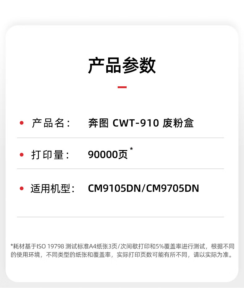 • 商品名稱(chēng):奔圖(PANTUM)CWT-910原裝廢粉盒 適用CM9105DN CM9705DN