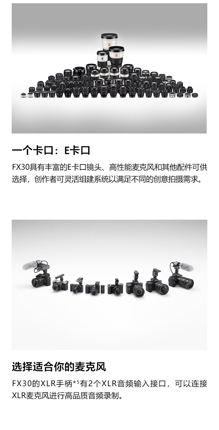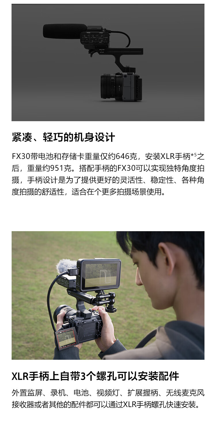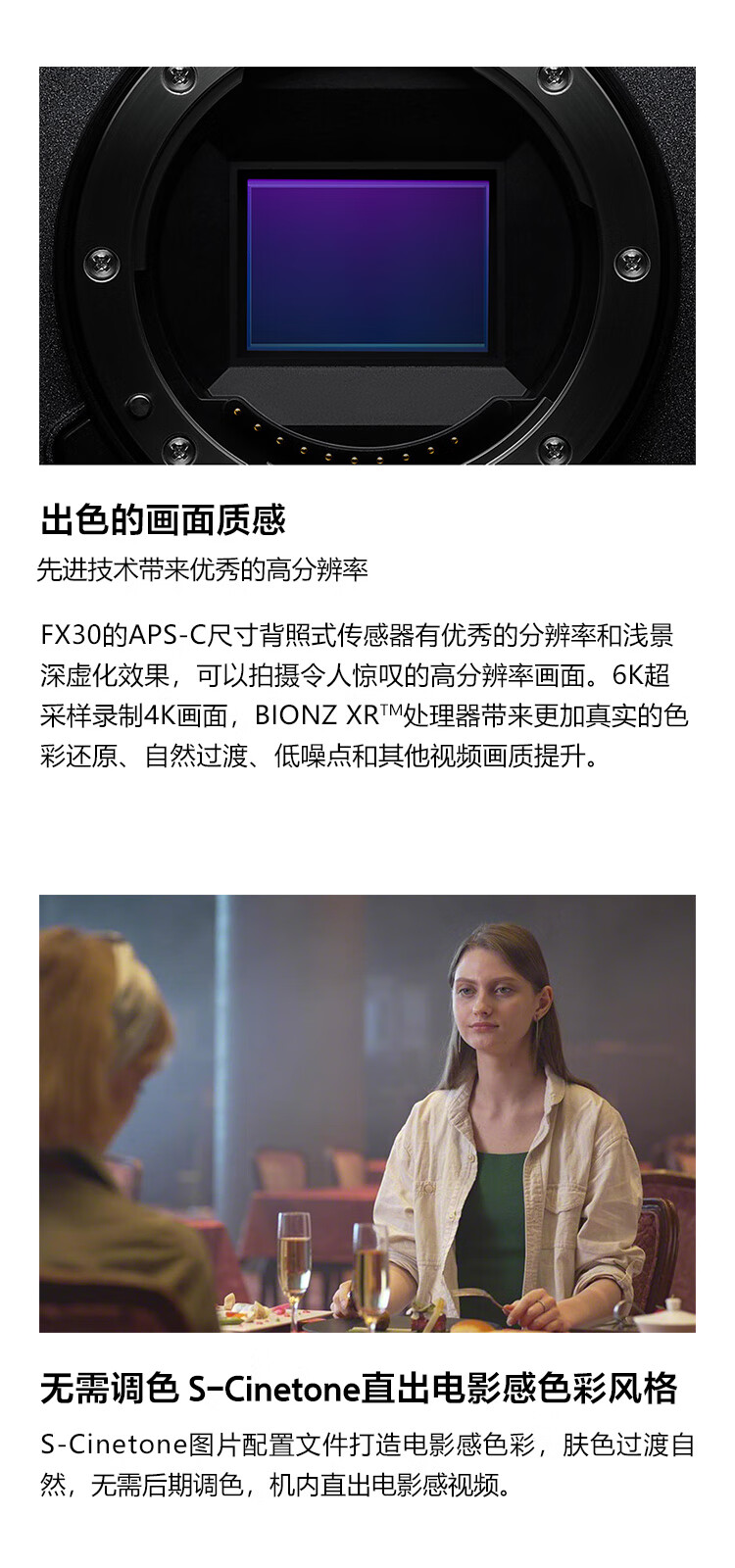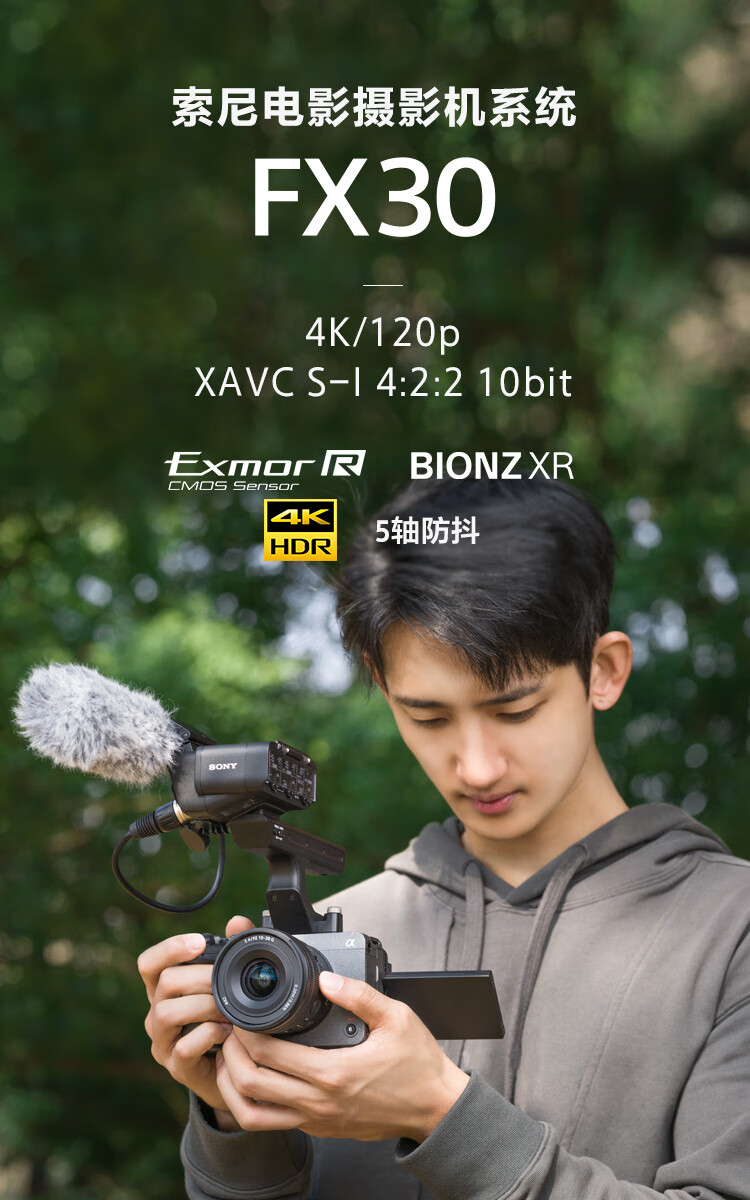 索尼(SONY)FX30 緊湊型4K Super 35mm 電影攝影機(含鏡頭*1、儲存卡*3、電池*2、麥克風(fēng)*1、云臺*1)